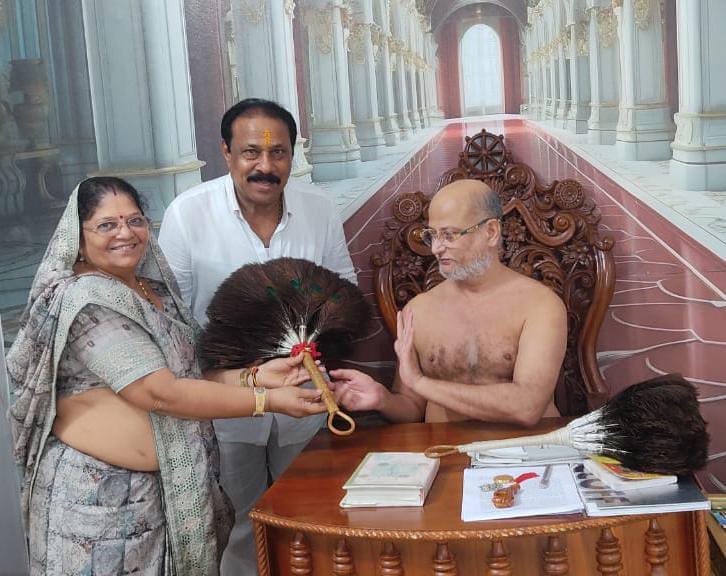 आचार्य पुलकसागरजी महाराज से सुरेश कोठारी को मिली मयूर पिच्छिका